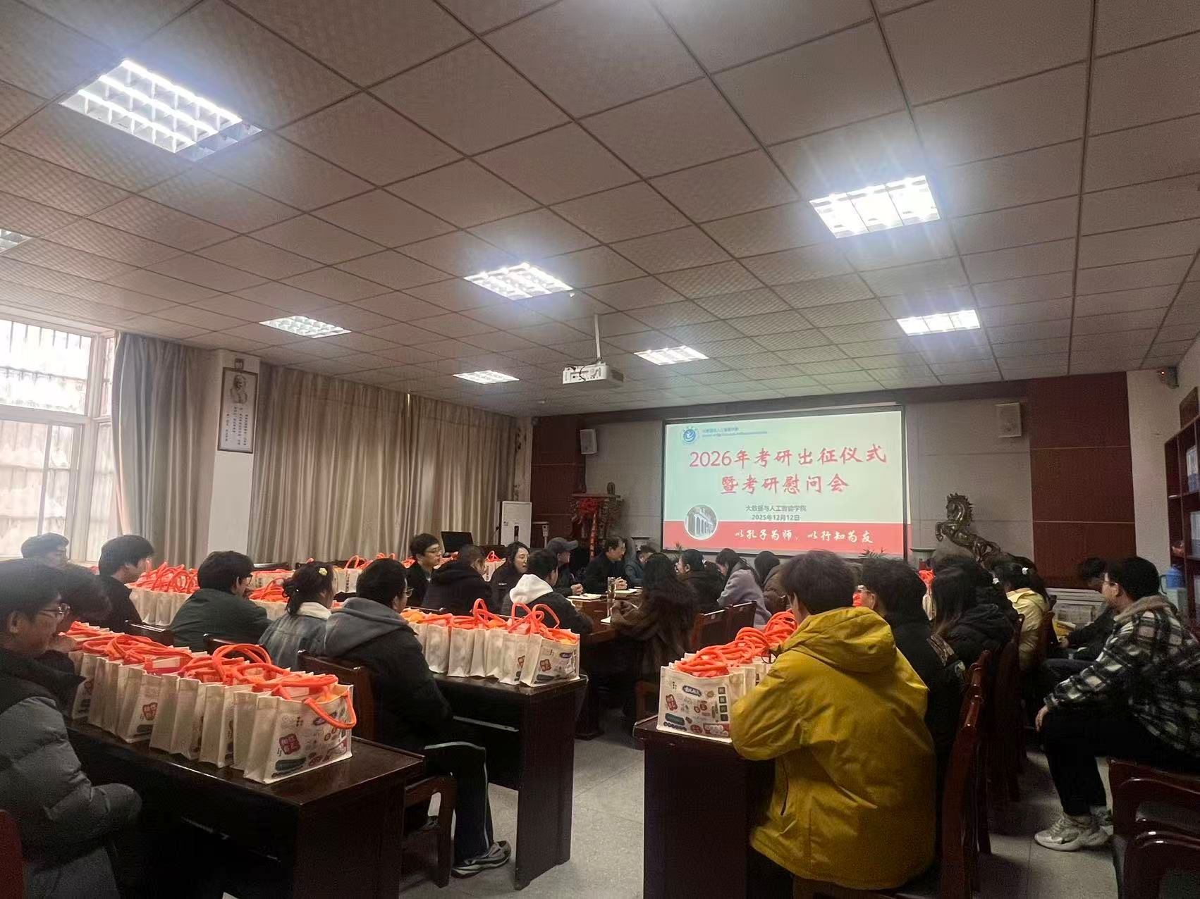 寒冬岁末,研途攻坚。为帮助考研学子缓解备考压力、提振冲刺信心,12月12日下午,大数据与人工智能学院领导班子成员、毕业班辅导员及专业教师代表,深入考研自习室、图书馆、学生宿舍,开展考研学子专项慰问活动,为即将踏上考场的同学们送上暖心关怀与真挚祝福。活动首先于学...