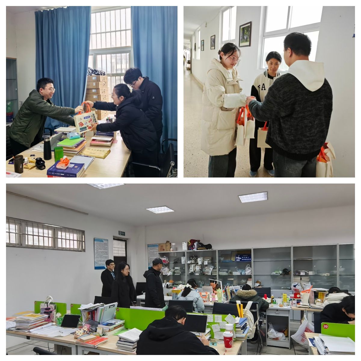 学院为同学们送上了精心准备的慰问品,包括考研必备文具、能量零食以及学弟学妹们准备的祝福贺卡等,每份慰问品都承载着学院对学子们的殷切期望与深切关怀。拿到慰问品的同学们纷纷表示,感受到了学院大家庭的温暖,将把这份关怀转化为备考的动力,全力以赴冲刺考研,不辜负学院的信任与培养。会后,学院领导与辅导员进入考研自习室、图书馆、宿舍,为广大考研学子送上祝福和慰问品。