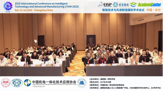 12月12-14日,智能技术与先进制造国际学术会议(ITAM 2025)在长沙顺利召开。本次会议由长沙师范学院主办、CCF长沙分部联合主办,中国机电一体化技术应用协会指导,湖南省机器人与人工智能推广学会等单位支持,汇聚了国内外智能技术与先进制造领域的顶尖专家学者,深入解读人工智能、数字孪生等前沿技术在制造业的融合应用与发展趋势,带来高水平学术分享。
