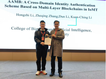 我院教师李宏志应邀参会,并凭借在相关领域的深厚研究积累,担任“智能传感与物联网技术”分论坛主席,统筹分论坛学术研讨与论文评审工作。会议期间,发表题为《AAMB: a cross-domain identity authentication scheme based on multilayered blockchains in IoMT》学术报告,聚焦医疗物联网跨域身份认证核心痛点,提出基于多层区块链的创新解决方案,详细阐述方案设计原理与应用价值。
