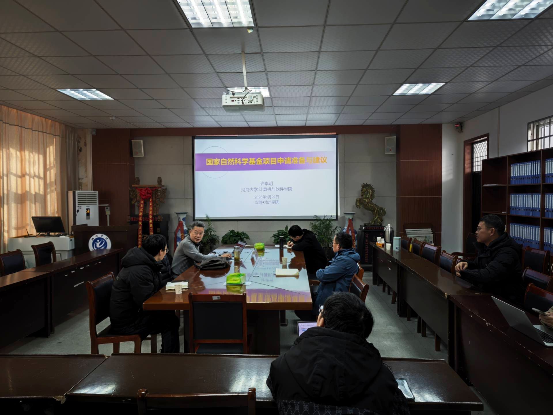 1月22日下午,学院再次举办基金论证会,特邀河海大学许卓明教授进行指导,吴燚副院长主持会议。