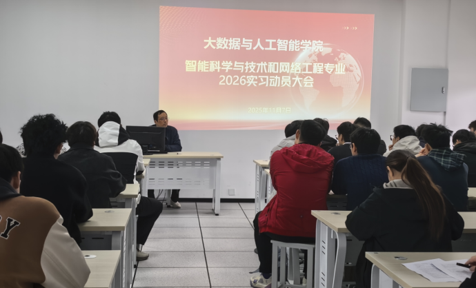 为深化产教融合,切实提升学生的专业实践能力与综合职业素养,2025年11月7日,学院智能科学与技术和网络工程两个专业联合召开2026届毕业生实习动员会。副院长张永、智能科学系主任潘韵、网络工程系主任赵盼和两个专业2026届毕业生参加了动员会。